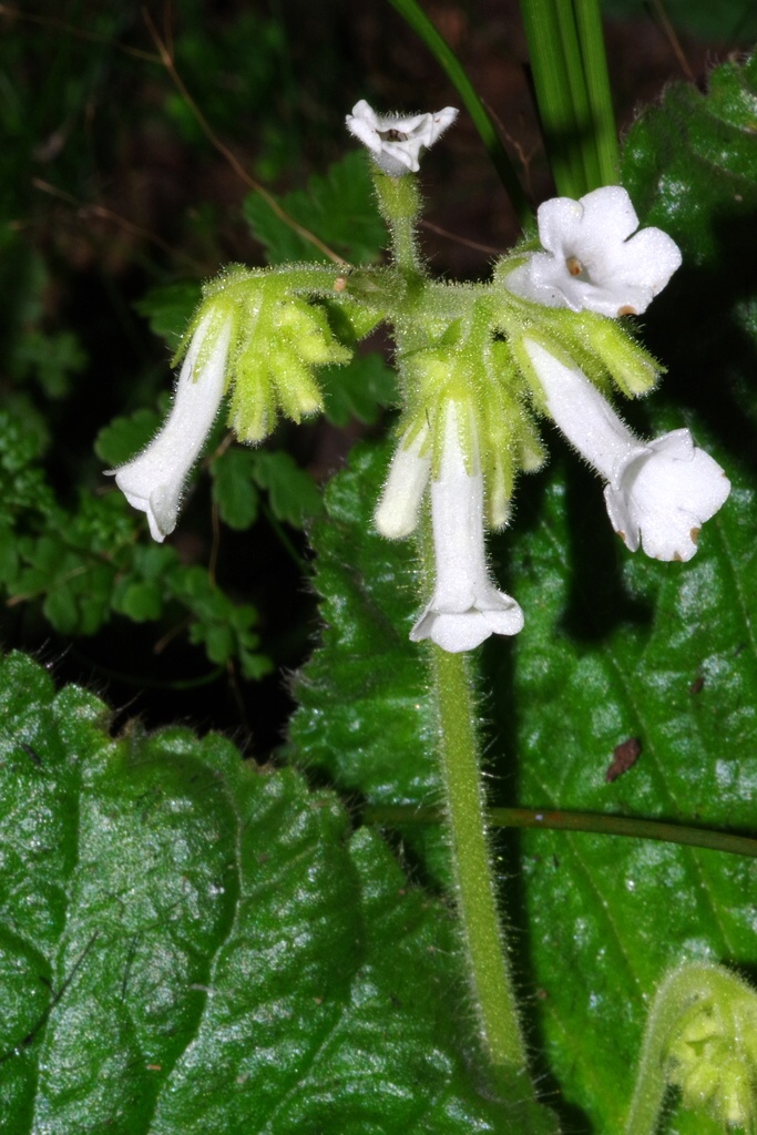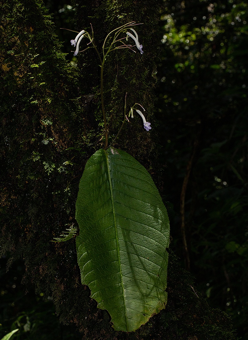 Streptocarpus solenanthus occurs over a wide range from the Manica Highlands on the Zimbabwe Mozambique border, to the Nyika Plateau in Zambia and Malawi, the Vipya Plateau in Malawi, the mountains at the northern end of Lake Malawi and even as far as the Uluguru Mountains in the Eastern Arc mountains, inland of Dar-es-Salaam, in Tanzania. It is a monocarpic, unifoliate species (leaf 350 x 70 mm) and grows both in forest and on rock outcrops. The corolla (22-36 mm) is whitish to pale violet, often with darker violet patches in the throat. With such a huge range more fieldwork is required to better define this species.