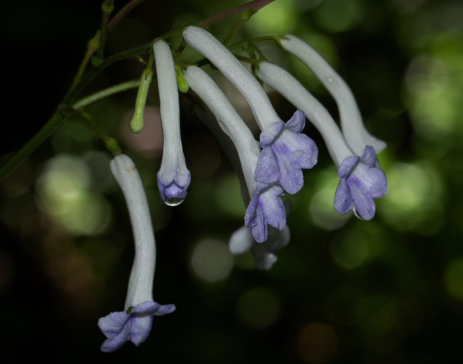The flowers are 15 – 20 mm long, most are white, sometimes very pale violet, and sometimes there is a yellow patch further down the corolla tube where the stamens are attached. It has not attracted much horticultural interest, but is a charming little plant that may attract the specialist and the hybridizer because it is smaller.