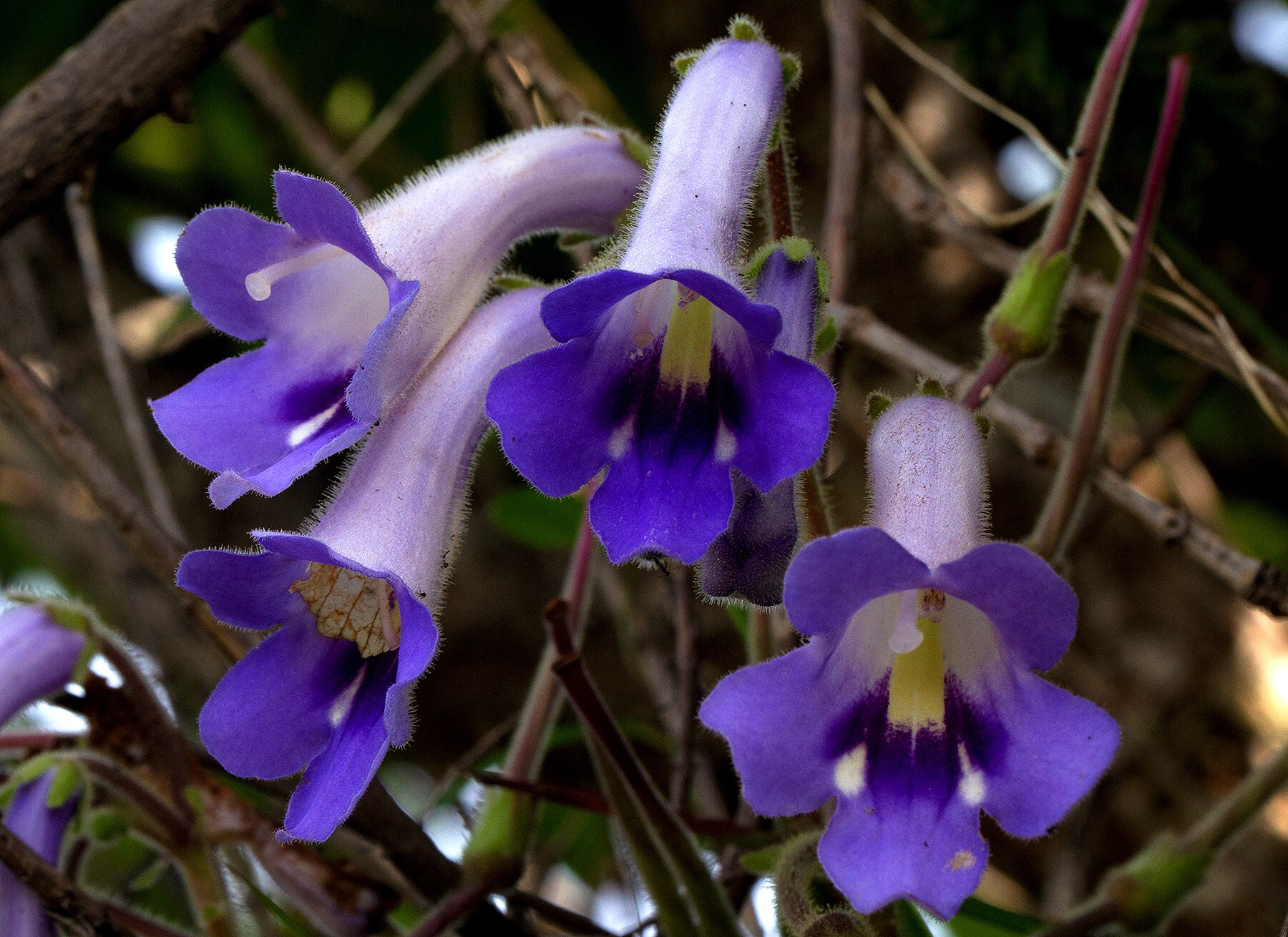 - The front view of the flowers, showing the prominent hairs on the roof of the corolla