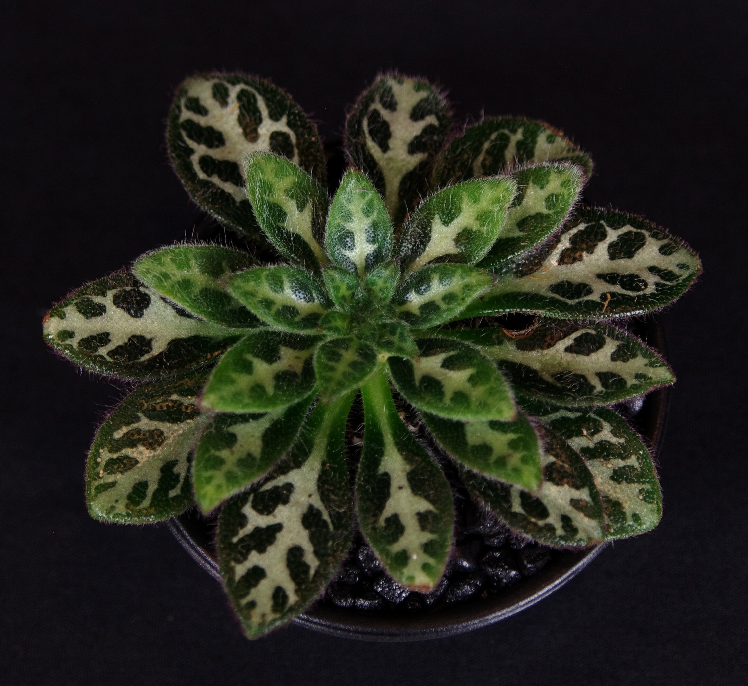 The appearance of this wonderful newish species varies somewhat according to culture, and perhaps to the particular clone. Some specimens seem to have darker leaves and more pronounced markings, while still being clearly the same species.