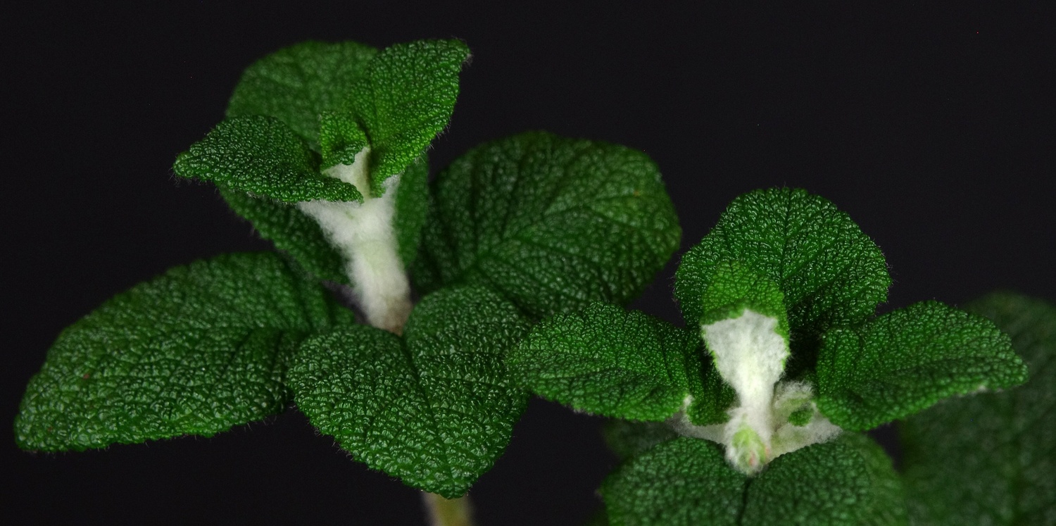This species is remarkable for the thick white wool on the back of new leaves and on the tips of new shoots, as well as for its “bullate” (bumpy or pebbly) leaves and its beautifully contrasting red flowers. It has begun to be widely used in hybridization, and has even been crossed with micro-miniature species.