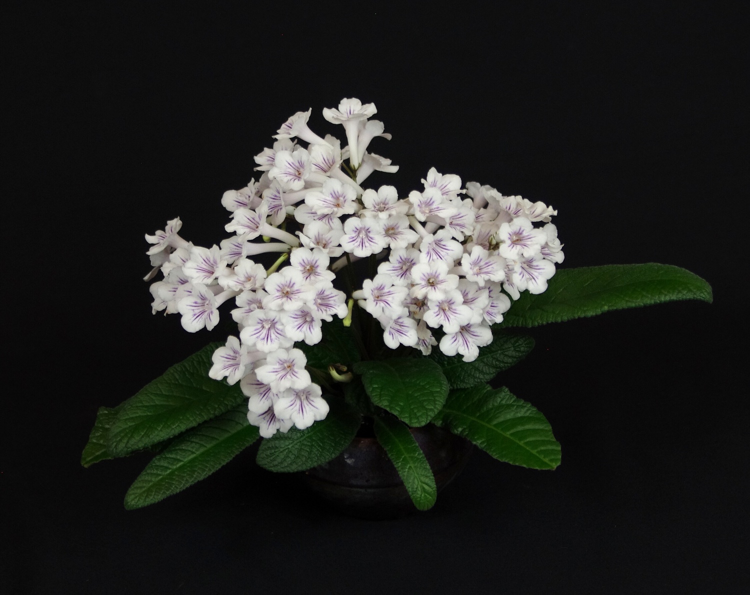 Exhibited at the 2025 convention show of The Gesneriad Society. This beautiful plant is a hybrid from Ralph Robinson of the Violet Barn; he describes it as his favorite of the great many he has produced.