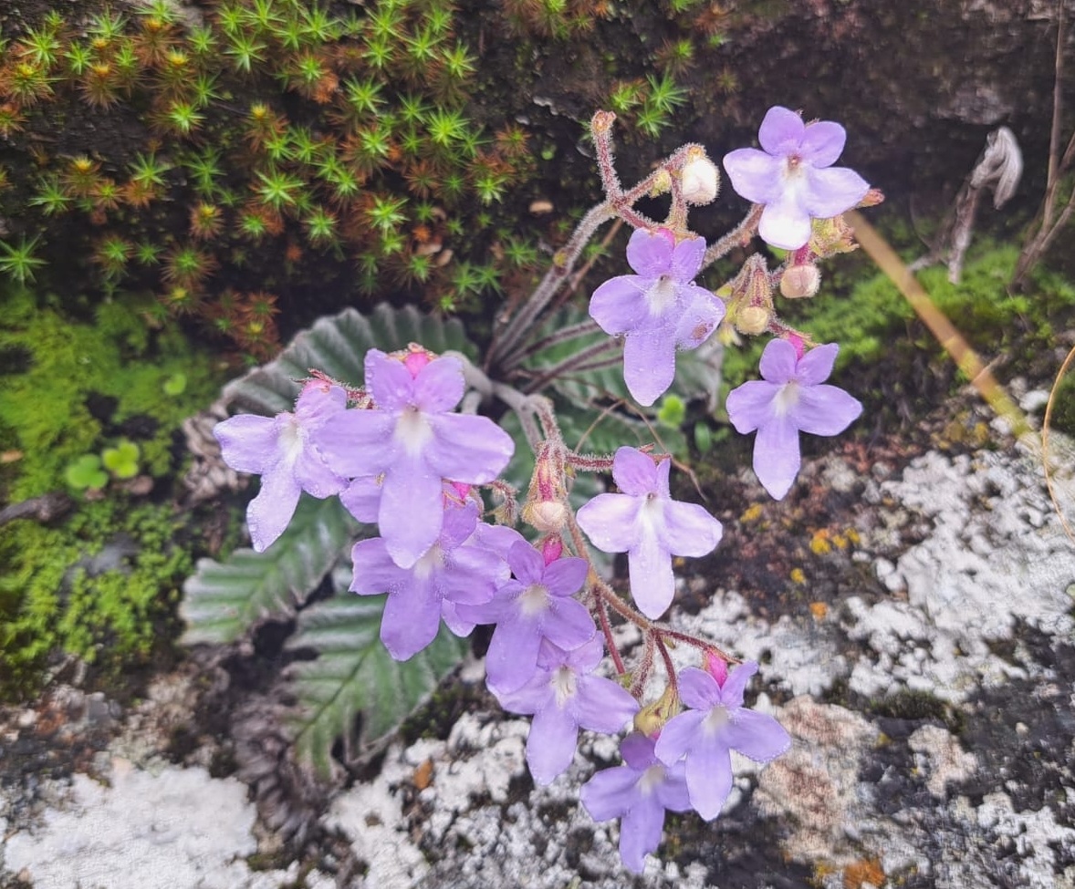 Streptocarpus nimbicola is named after its high altitude habitat on Mount Mulanje, the highest peak in Malawi. ‘Nimbicola’ means a ‘cloud-dweller’ and that it certainly is as the high Mulanje Mountain is often covered in clouds. Its characteristic pleated leaves regrow each year from the bases they die back to, so it is truly perennial. The flowers have a striking shape which can be classified as ‘keyhole’ but the corolla lobes are placed in a unique very attractive way. This was the reason why a picture of the flowers of this species were used as a frontispiece (opening photograph) of the highly authoritative book on Streptocarpus to this day by Hilliard and Burtt, published in 1971.