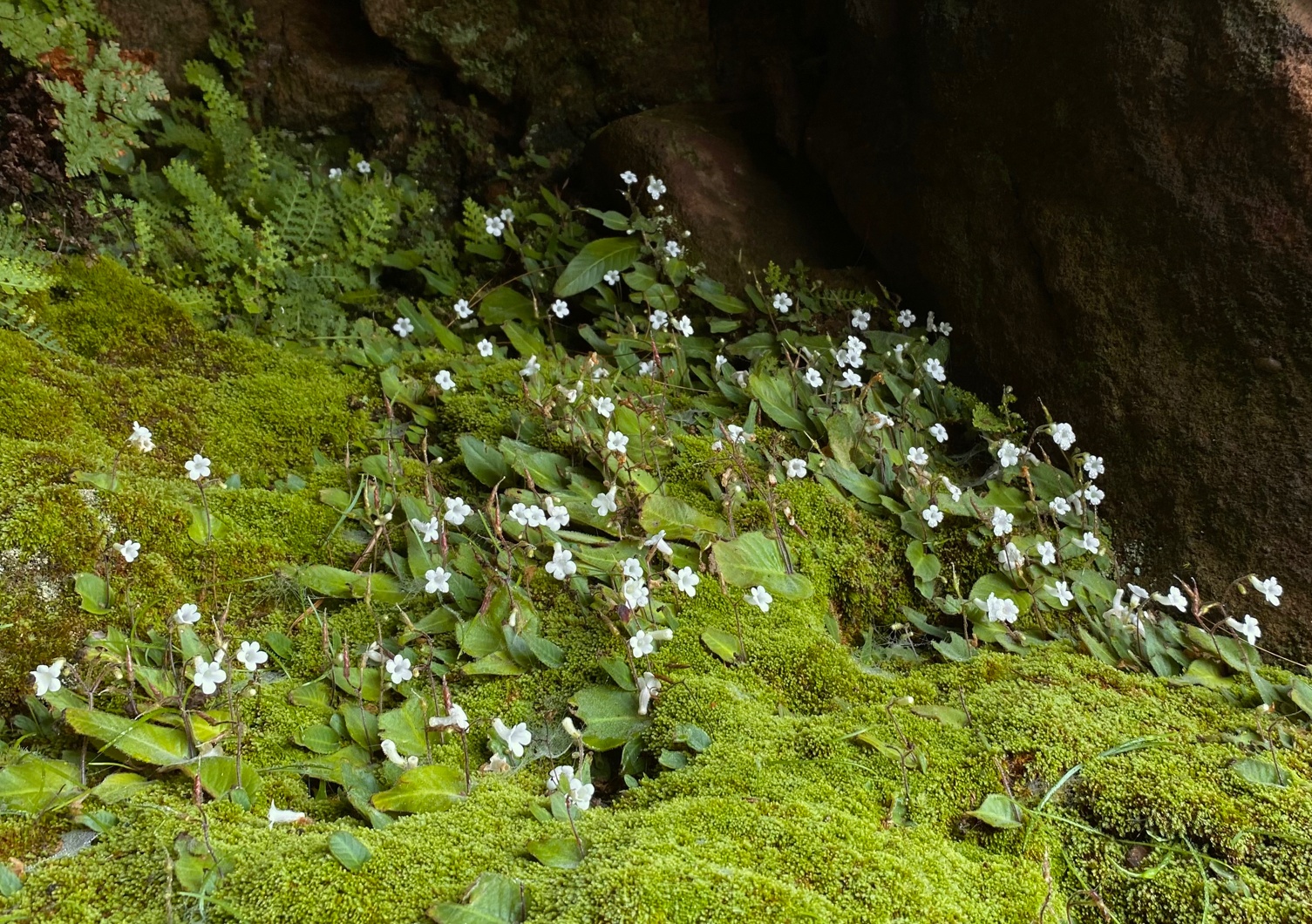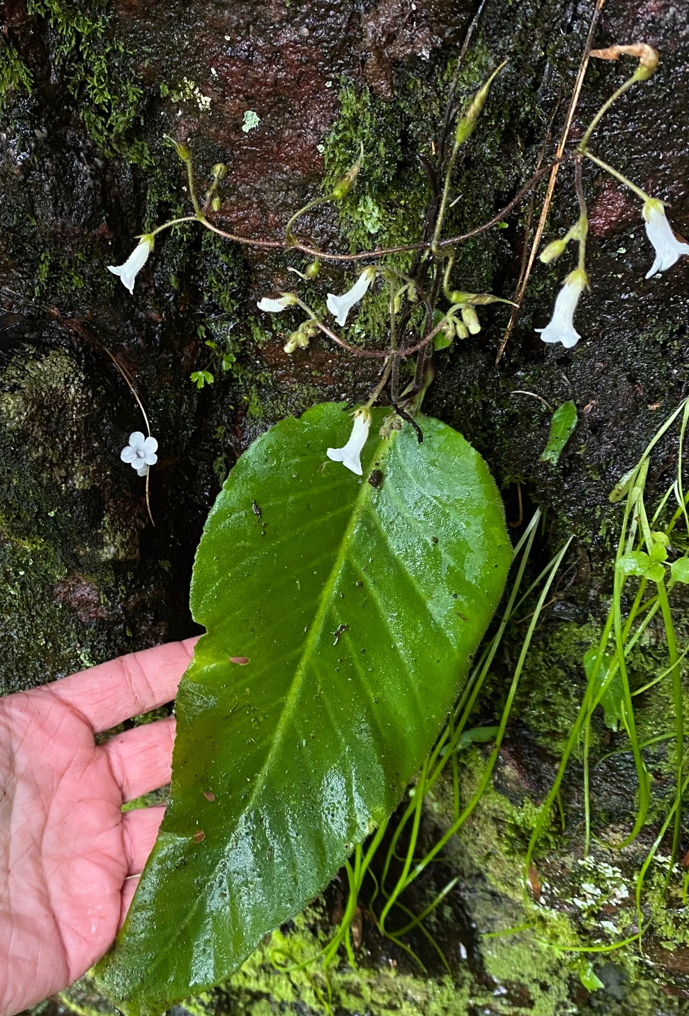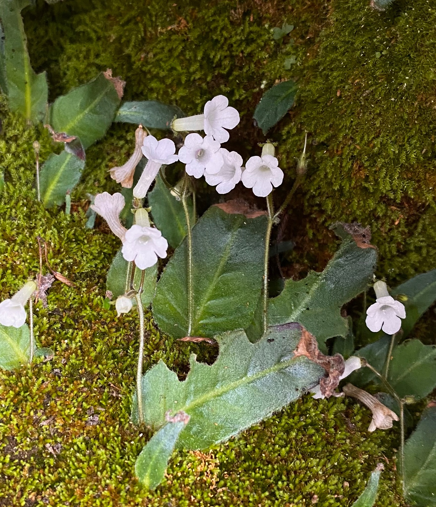 Streptocarpus rimicola is a very diminutive plant that grows in what would seem to be difficult circumstances. It grows under deep rock ledges and in cracks and fissures on the cliffs near the summit of a single high mountain, and apparently depends upon mist and seepage for moisture. It is described only from the Kranzberg in the Marakele National Park near the town of Thabazimbi, in the north west of Limpopo Province, South Africa close to the Botswana border.