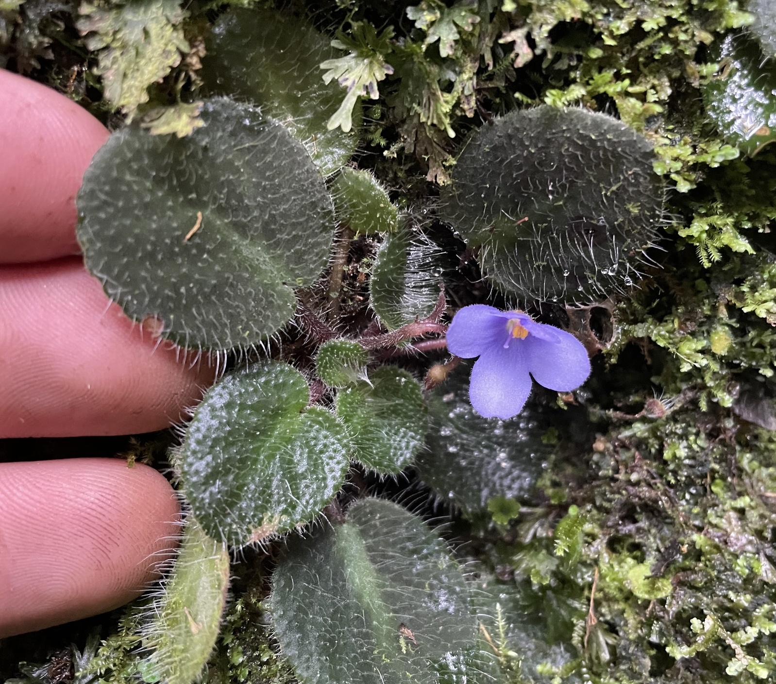 Streptocarpus shumensis is a diminutive plant that has been widely used in hybridizing to create small-growing cultivars. It is endemic to Shume in the west Usambara Mountains and in the Nguru Mountains, both in Tanzania. Its typical habitat is moist mossy rock faces, and similar locations.