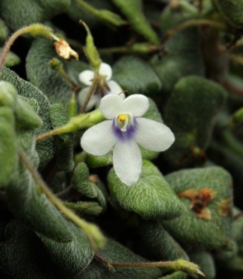 Saintpaulia watkinsii is a diminutive plant that forms mutliple crowns, and in fact features occasionally trailing/creeping stems reminiscent of caulescent species of Streptocarpus in subgenus Streptocarpella. It is found in very limited locations in the mountains of Eastern Tanzania, and is likely highly threatened in the wild. While it has been grown in cultivation at the Royal Botanical Gardens Edinburgh, it does not appear to have made its way to hobbyist cultivation.